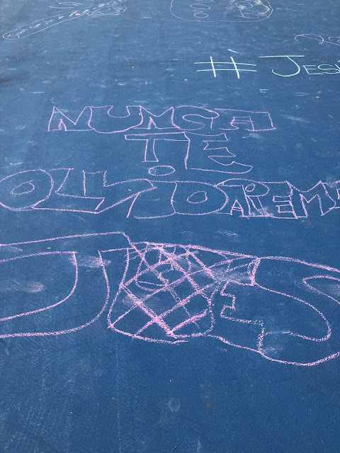Por su parte, los alumnos del colegio han expresado sus sentimientos dibujando con tiza los siguientes mensajes de cariño hacia Jesús. Sin duda es la mejor manera de expresar el pesar y el cariño de todos.